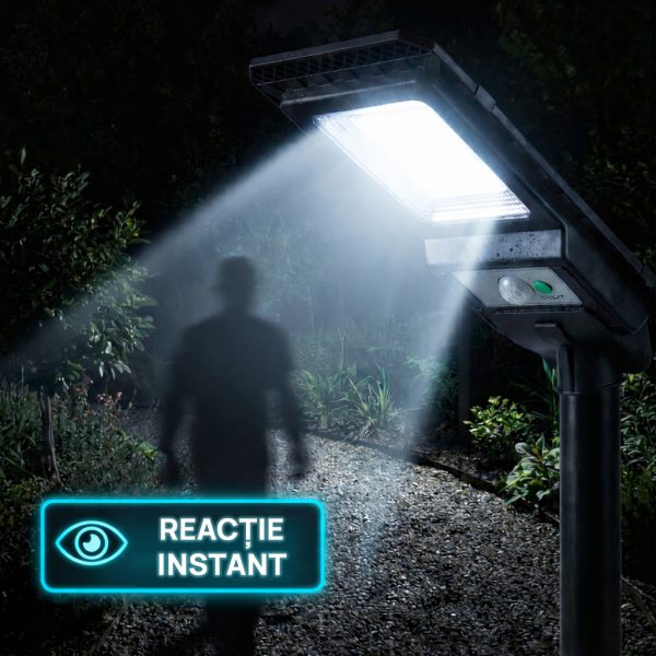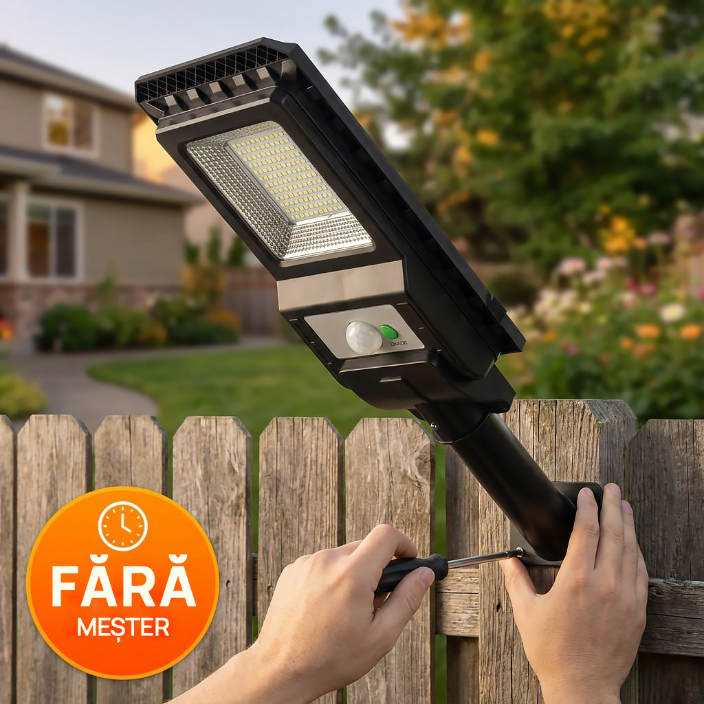 Când e întuneric în fața casei, fiecare sosire devine neplăcută și îți dă un sentiment de nesiguranță. Această lampă 115W rezolvă imediat: se încarcă ziua, se aprinde singură seara, iar la mișcare intensifică lumina exact unde ai nevoie – intrare, alee, curte, garaj.