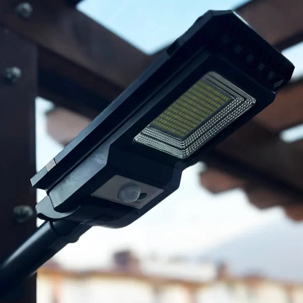 Lampa Solară cu LED SharkLight este echipată cu senzor de detectare a mișcării care activează fluxul puternic de lumină atunci când detectează o persoană sau un animal.